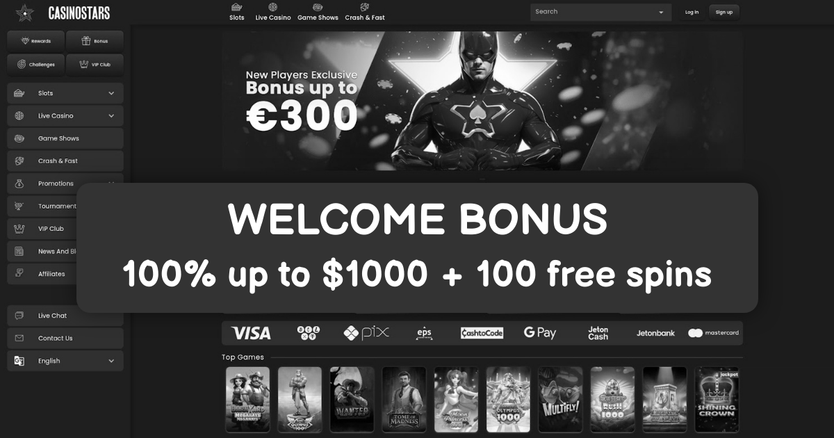 New players at CasinoStars are greeted with a generous 100% match bonus up to €/$300, designed primarily for slot enthusiasts. This substantial welcome offer effectively doubles your initial deposit, providing significant additional playing power from the moment you join the casino.